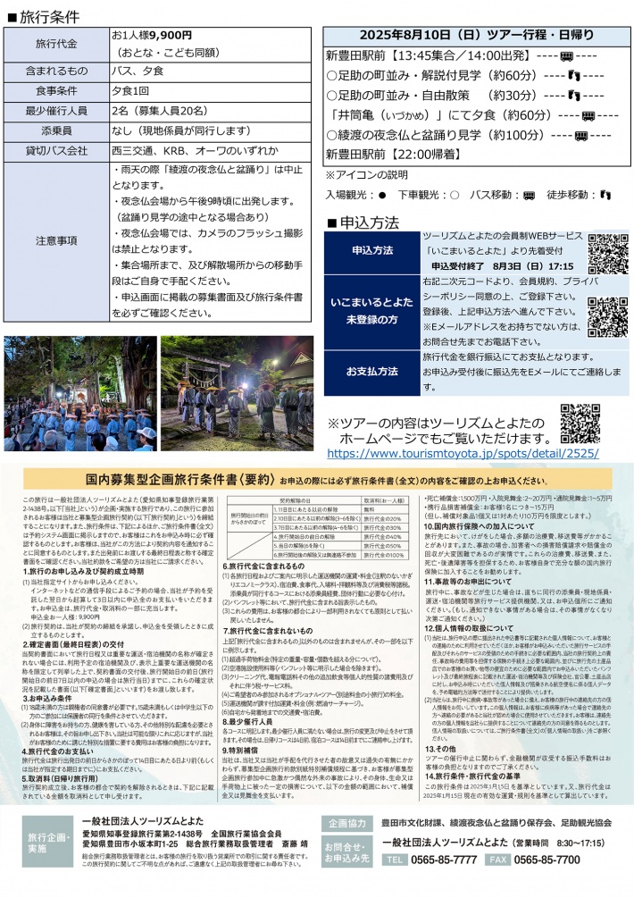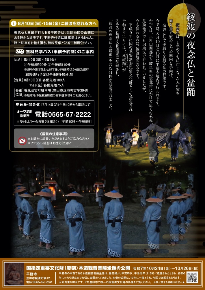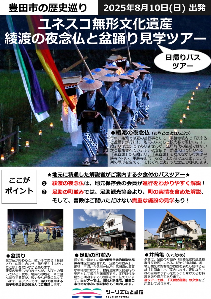 ツーリズムとよた企画『新豊田駅前出発 綾渡の夜念仏と盆踊り見学バスツアー』(夕食付)