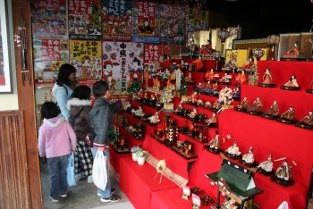 足助の町並みの民家や商家に、古くから伝わるおひなさんや土びな(土人形)を玄関先や店内に華やかに飾り、道行く人々に町並み散策を楽しんでいただこうと始まった足助の大きなイベントのひとつです。