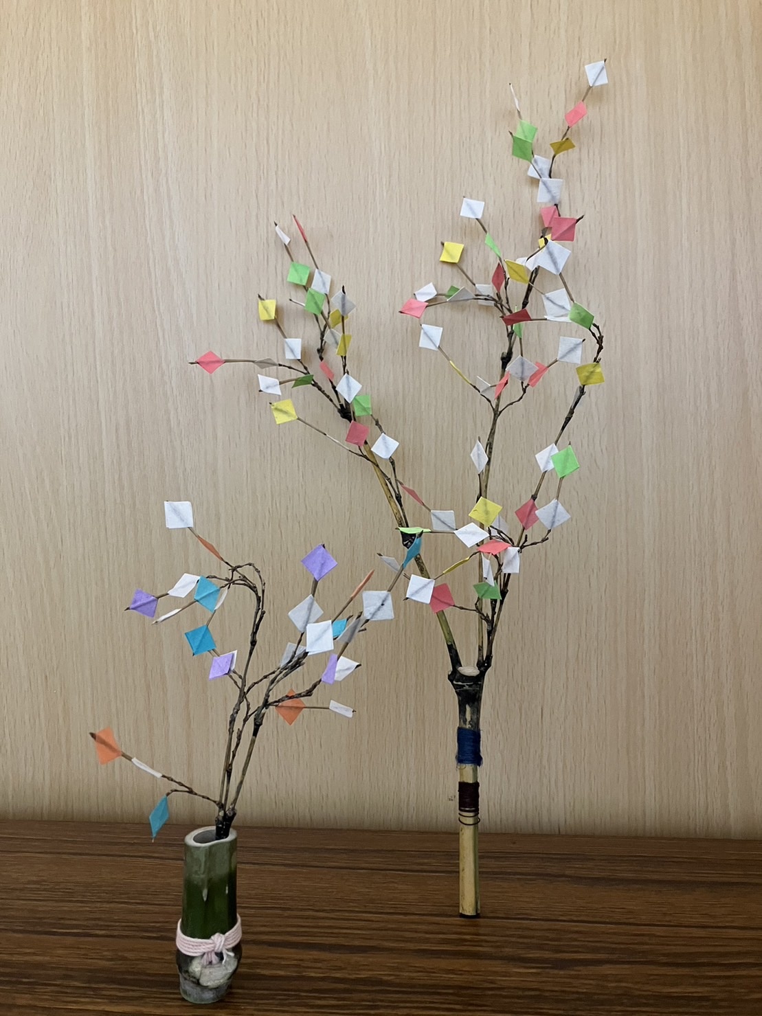 Experience of paste cut Japanese Washi papers on Bamboo Branches.