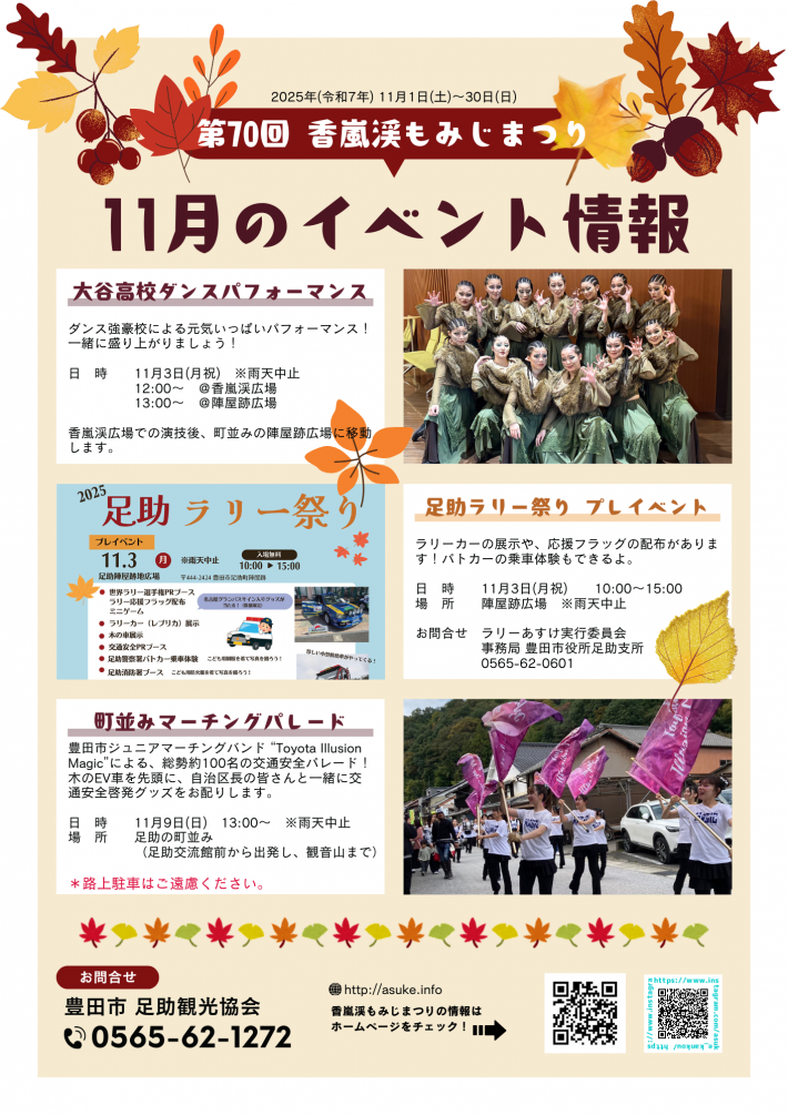 2025年(令和7年)『第70回 香嵐渓もみじまつり』11月1日(土)~11月30日(日)