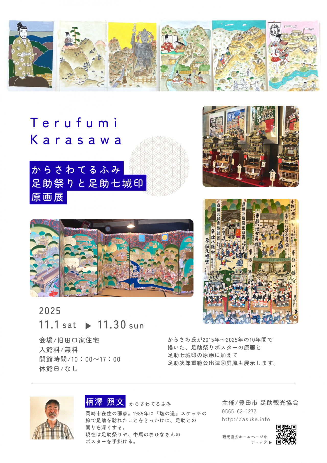 同時開催:『からわさてるふみ 足助祭りと足助七城印』原画展