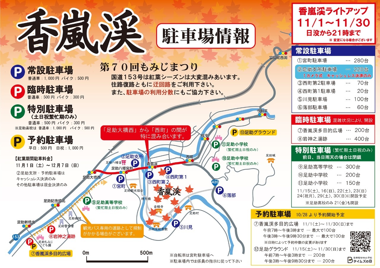 →→→ 香嵐渓駐車場情報 official parking information of Korankei