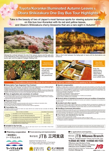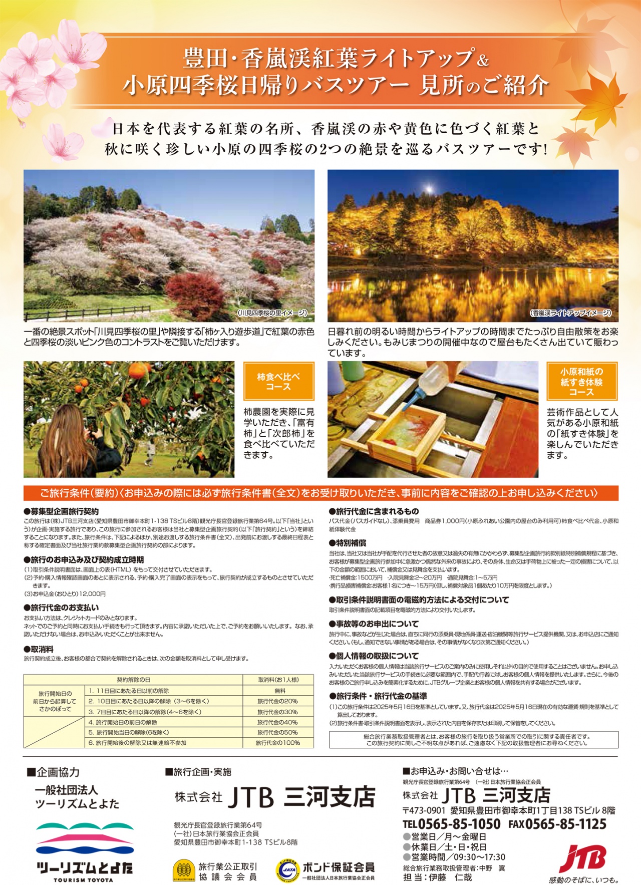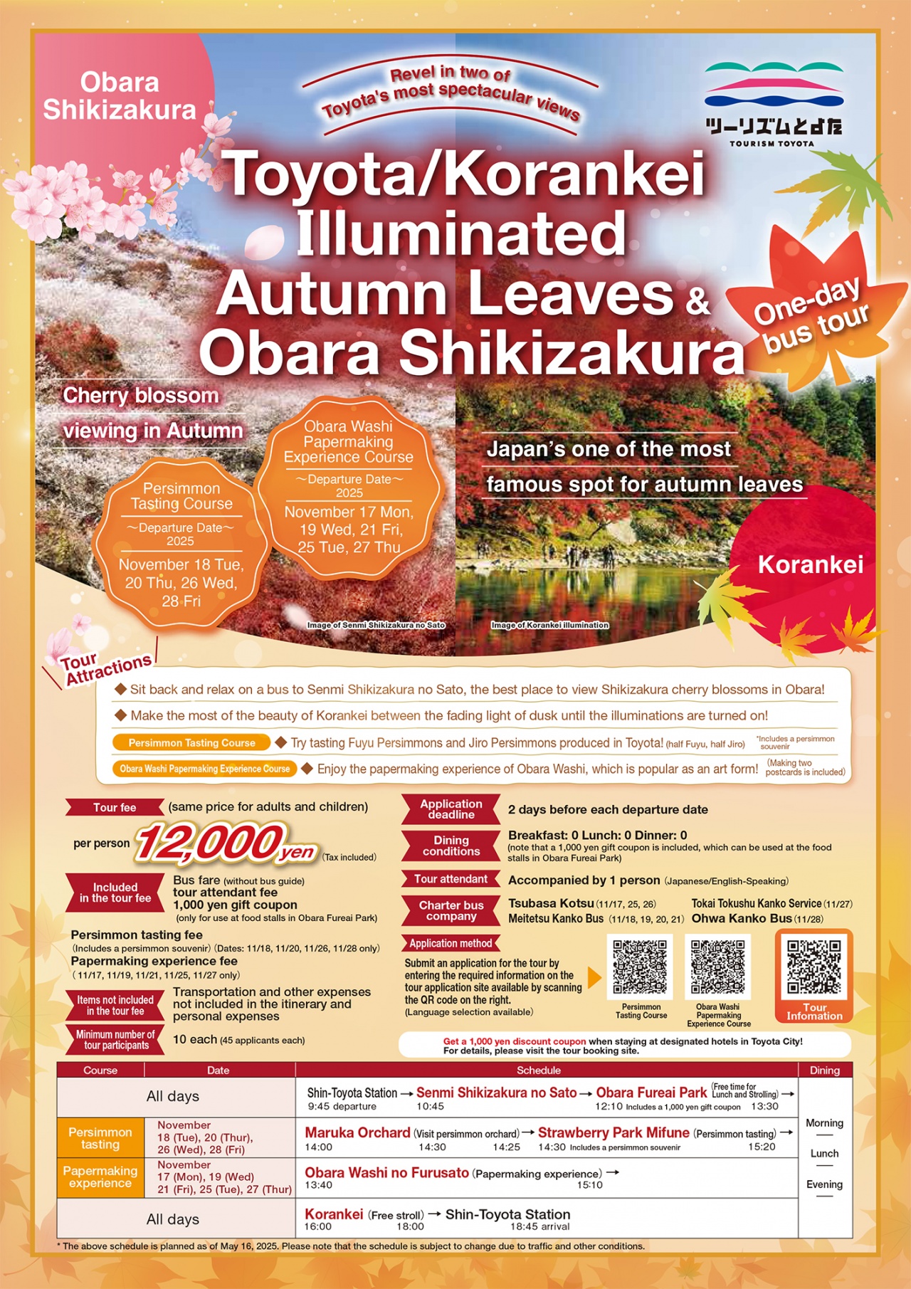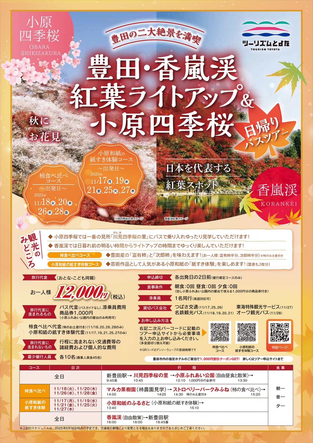 ~ツーリズムとよた~ 香嵐渓ライトアップ&小原四季桜 日帰りバスツアー
