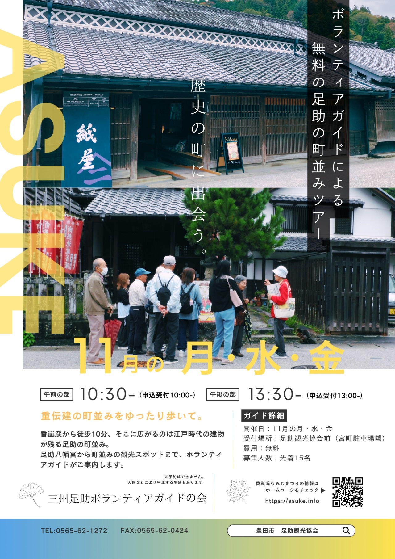 ●11月(香嵐渓もみじまつり期間中)は町並みガイドのみ、出発時間を決めて行います。※詳細は後述